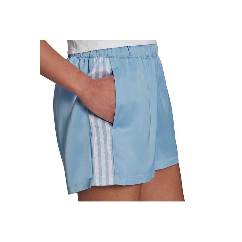 Estos pantalones cortos de adidas de color azul confeccionados en satín son ideales para salir a correr o a pasear. Te acompañarán en tu rutina deportiva e incluso se convertirán en una de tus prendas favoritas. Si no te conquista su diseño, corte o color seguro que lo hará su confort y el hecho de que el 97% del material utilizado en su confección es reciclado.