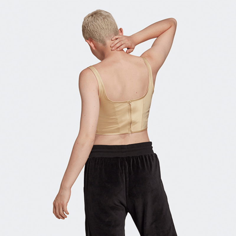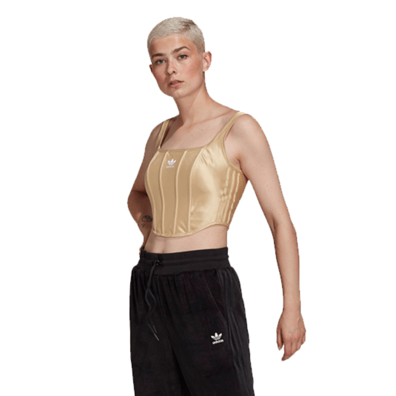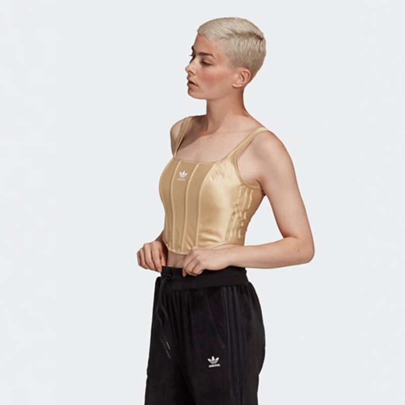 Este corsé adidas no solo combina con todo tipo de prendas sino que además favorece y moldea. Combínalo con un pantalón de felpa para lucir un estilo noventero o potencia todo su glamour. Su tejido de raso, escote profundo y dobladillo curvado serán irresistibles