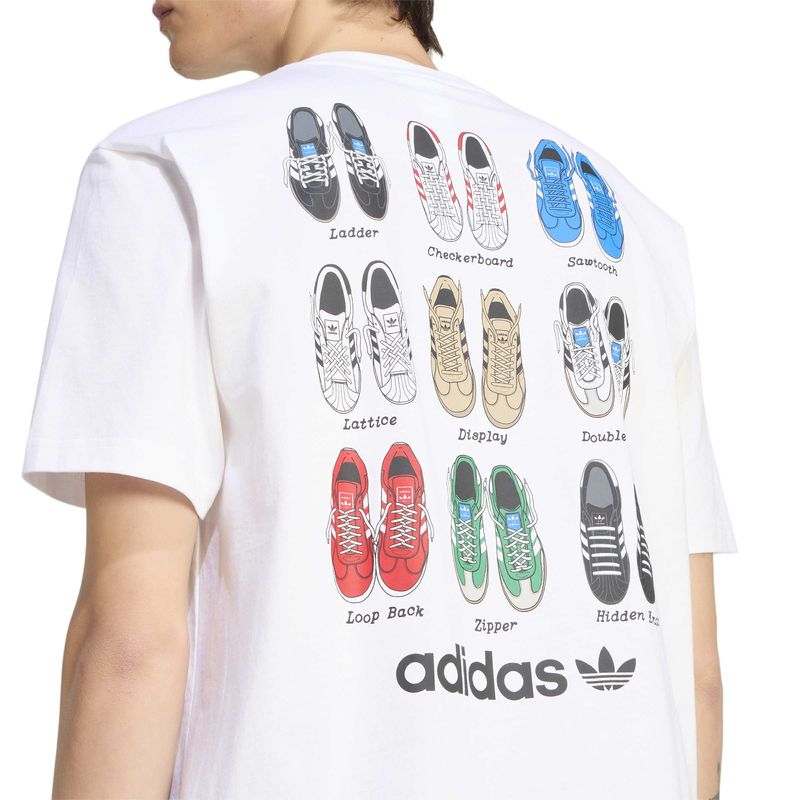 adidas apuesta por la expresión del estilo personal, y la camiseta Loose Graphic Shoes 4 refleja esta actitud con un diseño divertido y lleno de personalidad. En el pecho, el icónico trébol se sitúa sobre un gráfico de zapatillas, mientras que la parte trasera muestra varios modelos con diferentes formas de atado, demostrando cómo los pequeños detalles pueden marcar la diferencia y reflejar la individualidad.