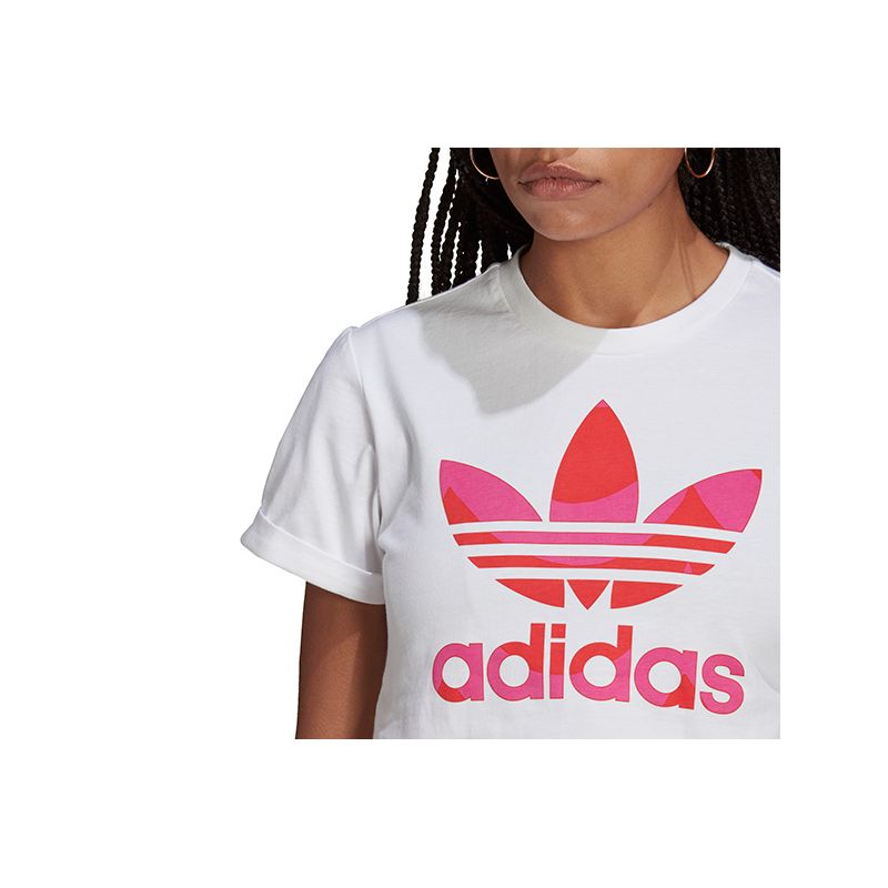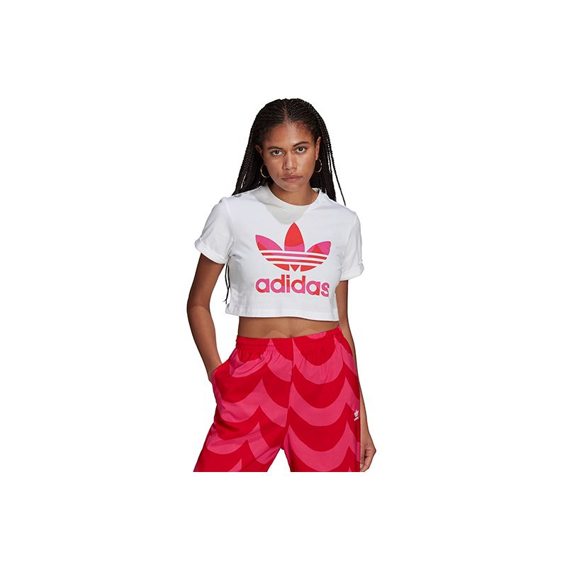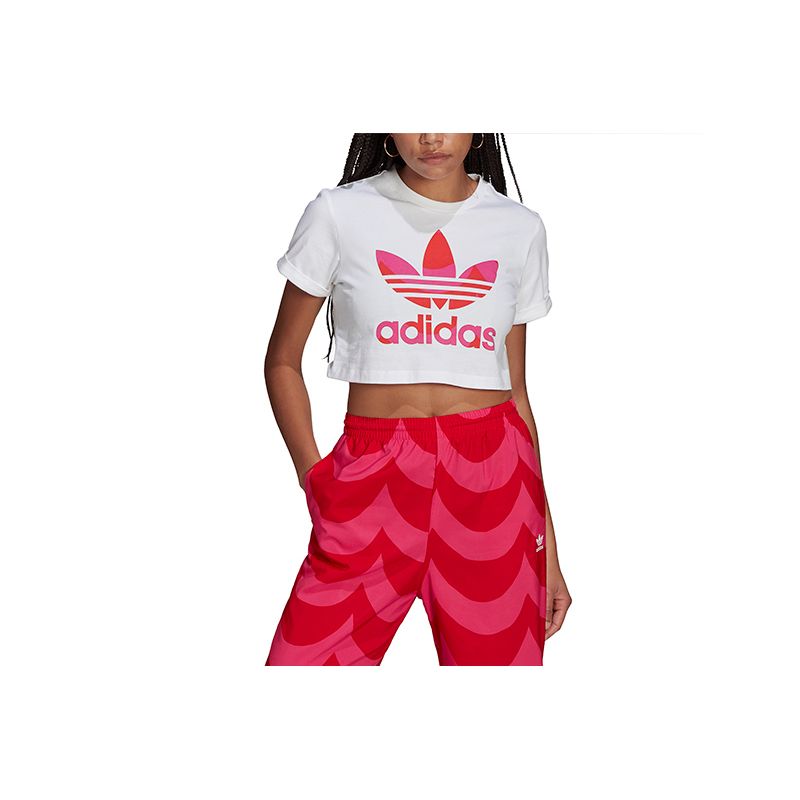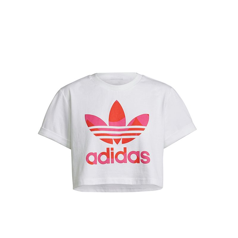 Esta camiseta adidas blanca con el trefoil estampado en tonos rosas y rojos, forma parte de la colección diseñada por la marca finlandesa Marimekko para adidas. El diseño de esta prenda sigue las últimas tendencias, por lo que su corte es inferior (crop top), lo que la convierte en un imprescindible para nuestros outfits. Hazte ya con tu camiseta adidas Marimekko trefoil infill cropped.