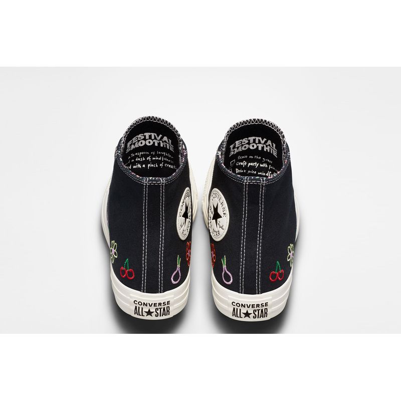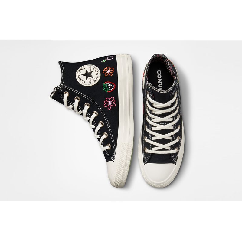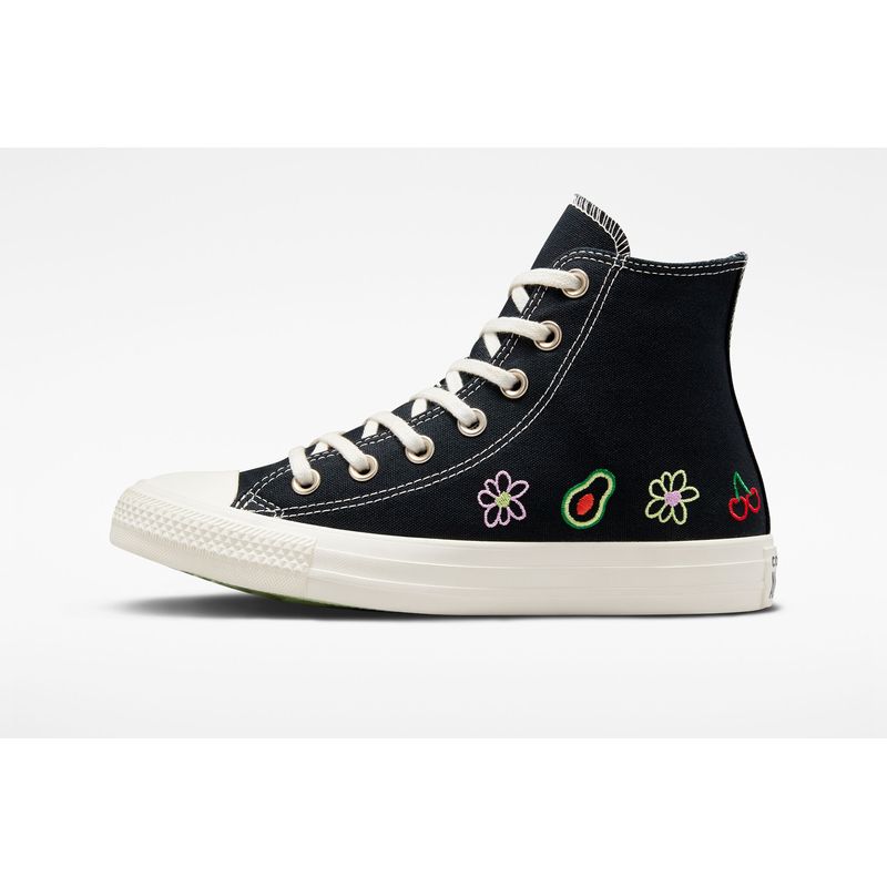 Justo a tiempo para la temporada de conciertos, estas clásicas Chuck se renuevan con un diseño inspirado en el verano. Actualiza tu colección con unas zapatillas de corte alto que fusionan detalles florales y frutales. Con suelas exteriores en un vibrante color verde y estampados sorpresa en el interior de la lengüeta, estas sneakers están diseñadas para captar todas las miradas.