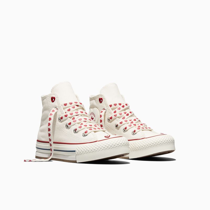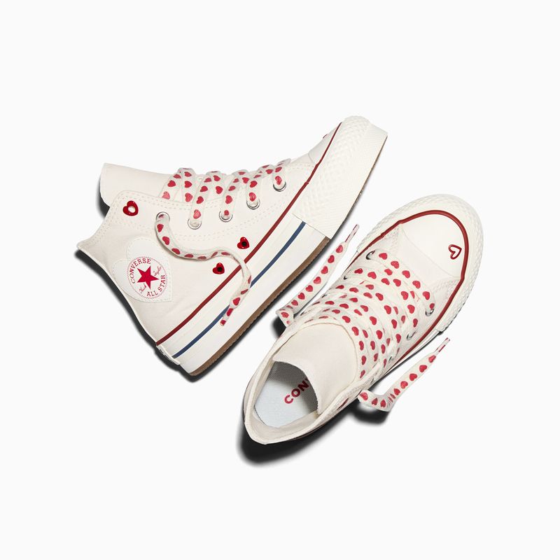 Ojales, matrícula, puntera y cordones con detalles en forma de corazón