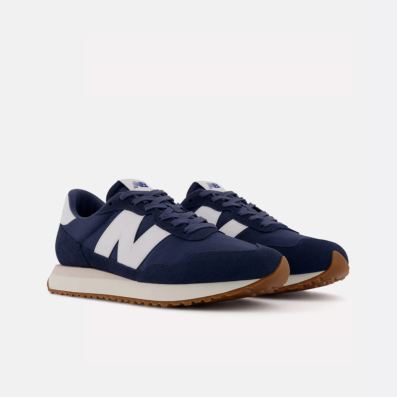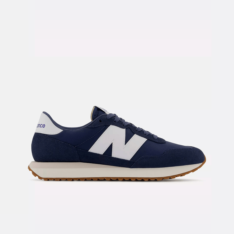 Las zapatillas New Balance de running de los 70 son sencillas, pero solo en apariencia. Aunque carentes de la tecnología y el diseño agresivo de las zapatillas modernas, las características innovadoras de esa década son las precursoras de las líneas actuales. La 237 es una reinterpretación contemporánea de las zapatillas de running clásicas de los 70, y fusiona la inspiración de diseño clásico con una silueta en apariencia sencilla, aunque excepcionalmente versátil y actual. La entresuela de EVA, la suela en forma de espiga y el empeine aerodinámico constituyen el lienzo donde plasmar los elementos modernos, como la marca «N» sobredimensionada, la entresuela extendida y las protecciones y el moteado inspirados en la piel de cocodrilo. El aspecto familiar de la 237 junto sus toques extravagantes constituyen la forma más sencilla de marcar tendencia.