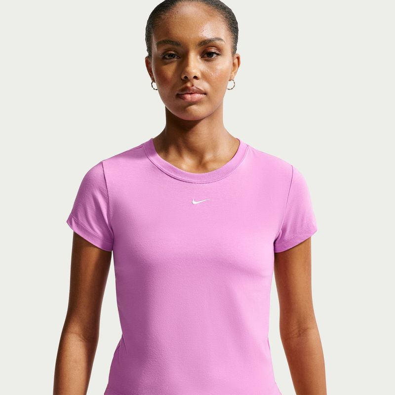 Ideal para cualquier ocasión, esta camiseta ligeramente corta es versátil y presenta un estilo clásico. El tejido de punto suave es elástico y tiene una caída ligera, proporcionando un ajuste cómodo que se adapta perfectamente al cuerpo.