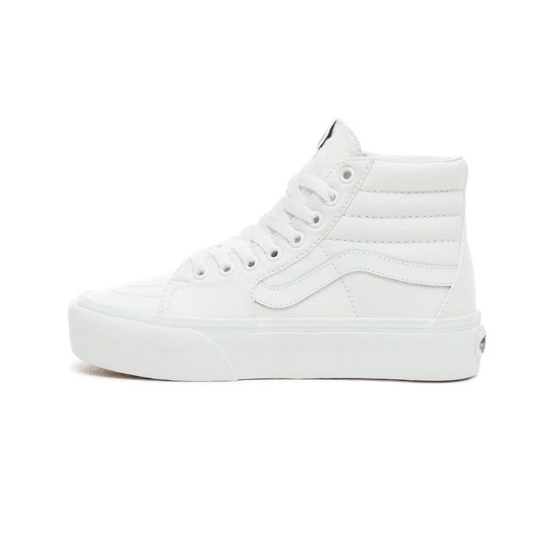 Las zapatillas Vans Sk8-Hi 2.0 con plataforma tienen el legendario diseño de la zapatilla alta de cordones, con una pala de cuero y ante resistente, puntera reforzada para soportar el desgaste, cuello acolchado para ofrecer sujeción y flexibilidad y la distintiva suela waffle de goma con plataforma.