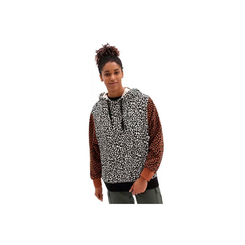 Esta llamativa sudadera Vans Wild Patchwork con capucha luce una mezcla de estampados de leopardo, guepardo y cebra y está acabada con detalles de canalé liso, logotipo clásico bordado en el lado izquierdo del pecho y corte tipo blusa.